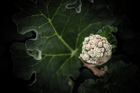 Large leaf of a vegetable marrow. Bottom view on the leaves of a squash bush