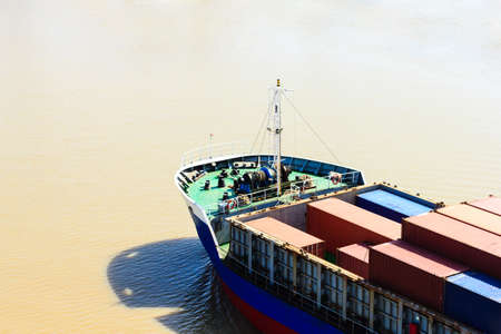 container ships closeup on yangtze river, water transport concept