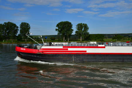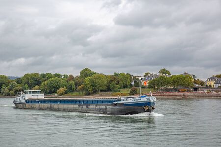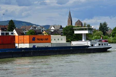 Rhine Valley; Germany- August 11 2021: barge on the Rhine