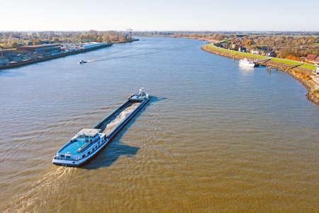 Aerial from shipping on the river Lek near Schoonhoven in the Netherlands