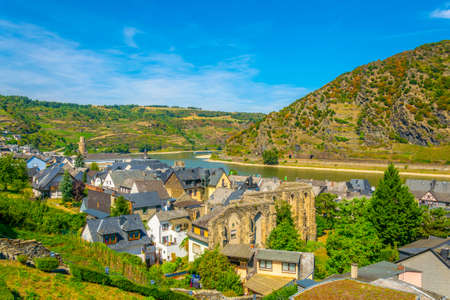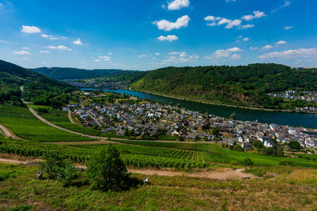 Panoramic view of the Moselle vineyards, Germany. Alken on the Moselle.