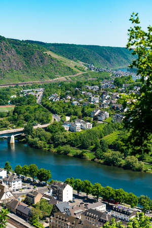 COCHEM, GERMANY - MAY 23 2019: View of the picturesque town Cochem with its famous imperial castle on top of the hill. Cochem is located at Moselle river in Rhineland-Palatinate, Germany.