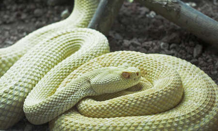 A snake at a terrarium in a zoo, orthriophis taeniurus albino animal