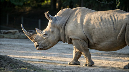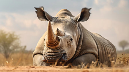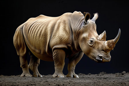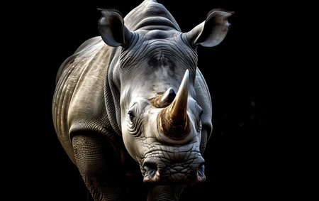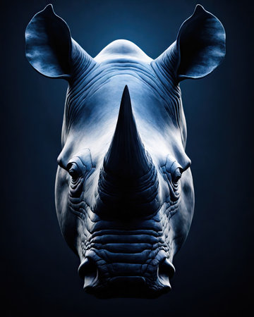 Portrait of a Majestic Rhinoceros Symbolizing Strength and Resilience on a Dark Background