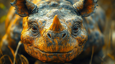 Beautiful One Horned Rhinoceros. Close up photo. Amazing portrait of an awesome rhino. Generative AI