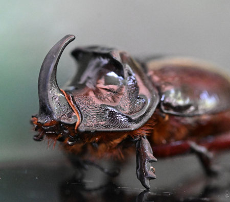 Macrophotography of a Rhinoceros beetle (Oryctes nasicornis).