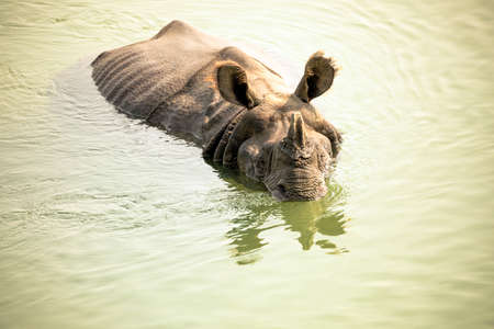 Rhino in river Chithwan National Park