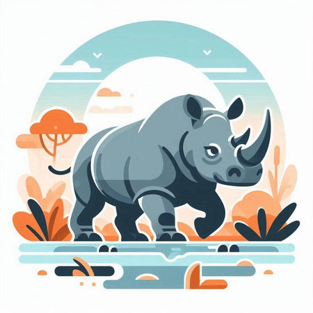 Rhinoceros in the park. Vector illustration in flat style