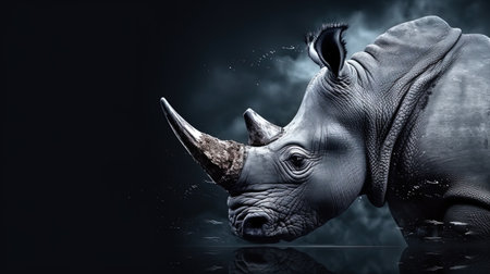 Portrait of a Majestic Rhinoceros Symbolizing Strength and Resilience on a Dark Background