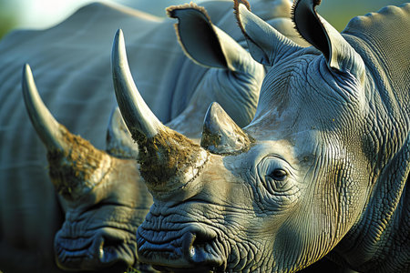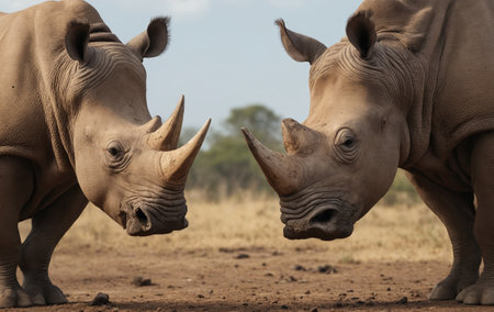 Majestic black rhinoceros in profile, highlighting powerful horns and detailed skin texture