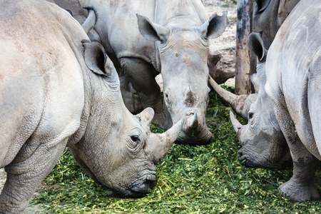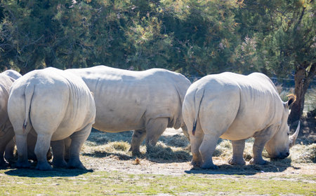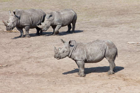 Three white rhinoceros or square-lipped rhinoceros (Ceratotherium simum)