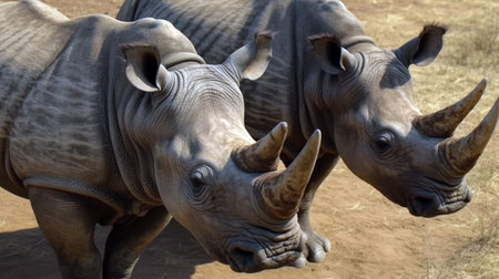 Close up Black Rhinos Angle view Aerial view Season. Generative AI