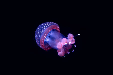 white-spottd jellyfish,Australian spotted jellyfish in glass cabinet.