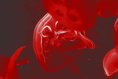 Gradient Map filter on jelly fish floating in tank. Blood Red and white colors.