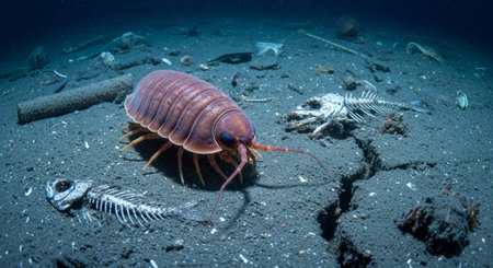 Close-up of a sea slater crawling on a rock, showcasing its segmented body and delicate legs, macro photography and don't have generated by AI.