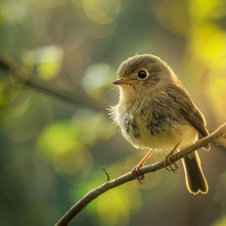 Delicate Bird Perched on a Flowering Branch, Spring Nature Scene with a Serene Ambiance