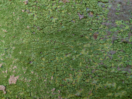 Old rusty metal surface with green lichen. Abstract background and texture for design.