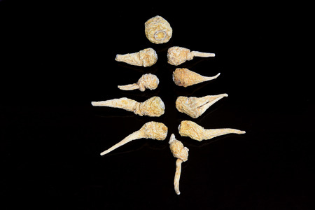 monsoon seasonal mushroom, high in calcium isolated on a black textured background