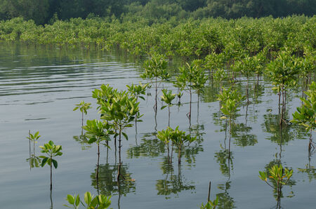 Mangrove plants growing in wetlands protective earth connection from the storm And breeding animals