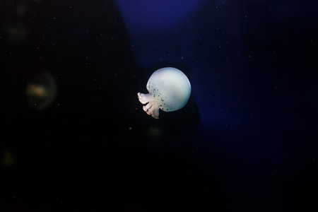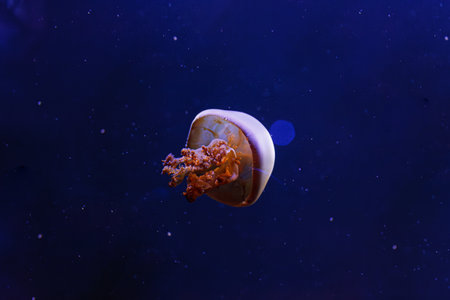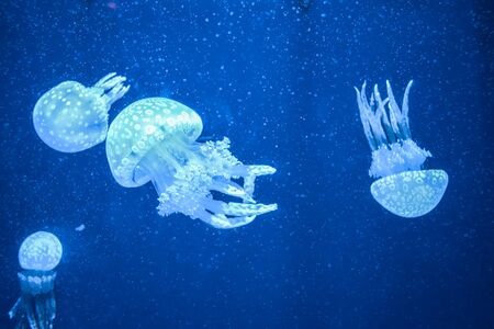 beautiful jellyfish or medusa swimming in blue aquarium