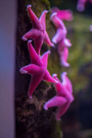Starfish attached to the glass wall of the aquarium of San Sebastian, Spain
