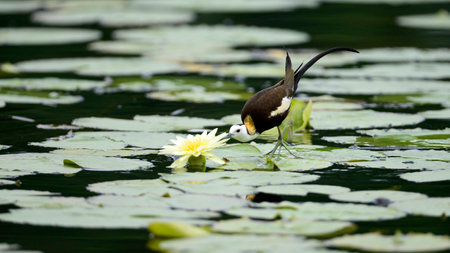 Wader bird by a lotus flower