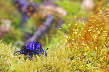 Macro closeup woodland ground beetle in natural habitat