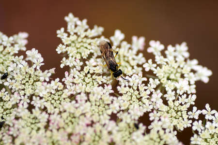 Honey wasps are foraging in the horticultural essence. little bee that has a dangerous sting