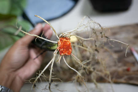 Caladium bicolor plant propagation by cutting rootstock.