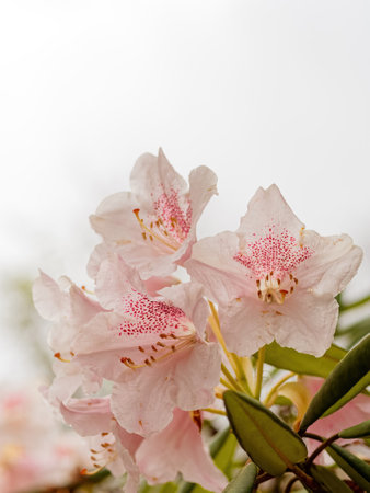 Delicate pink rhododendron blossom in soft sunlight, highlighting natural beauty