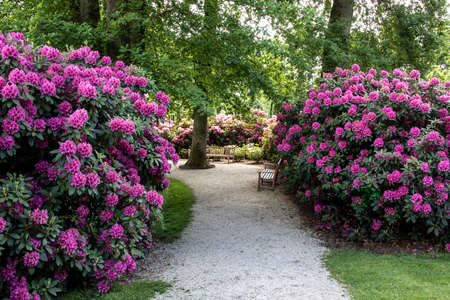 Rhododendron hybride in the park, park area with rhododenrons, garden area