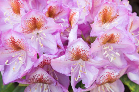 Pink rhododendron macro, close up, lush bloom in the nursery of rhododenrons.