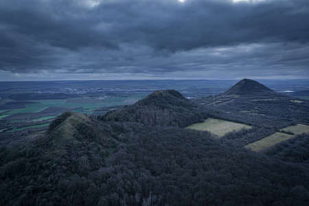 Aerial view of beautiful landscape in Mountains with forest. Sleza mountain near Wroclaw in Poland. Nature background