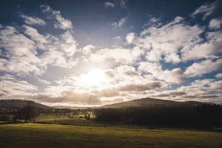 Beuatiful sunset in fields of Czech Republic. Beautiful clouds and shining sun