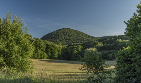 Sunset in the jurassic hills of Upper Franconia, Germany. Lovely Spring evening in the rural countryside near Bamberg. European Scenery