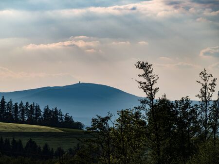 Sunset behind mountains in national park Krkonose, Czech Republic