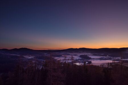 View on Ceske Stredohori mountains from Milesovka hill in winter