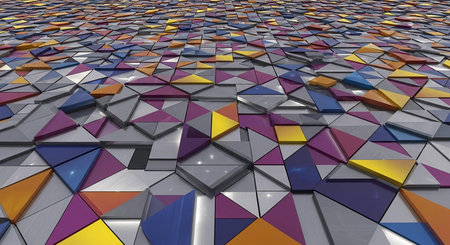 Triangles showing vibrant abstract 3d geometric surface with interlocking triangles and squares in multiple colors. resolution