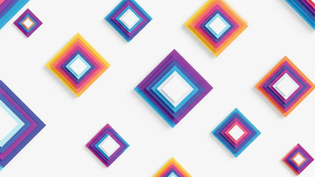 Vibrant geometric abstract design with colorful overlapping squares.