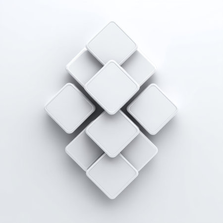 A captivating minimalist design featuring a geometric arrangement of white square boxes on a light background, ideal for various creative projects and concepts.