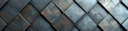 A close-up view of a wall covered in diamond-shaped metal tiles arranged in a diamond pattern. The tiles have a reflective surface, creating a captivating visual effect.