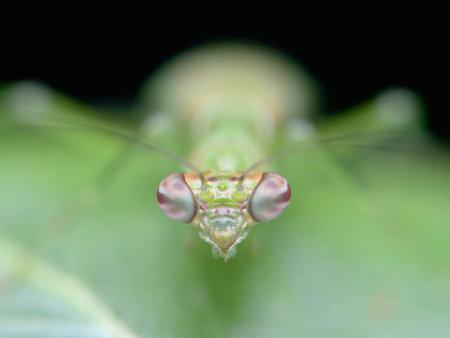 close up face of young giant asian mantis