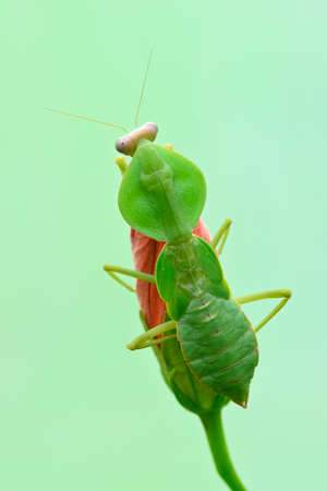 Hood praying mantis from Asia in green mimicry color.