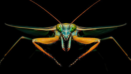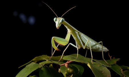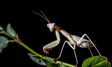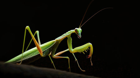 Crisp, Clean studio Shot of Green Praying Mantis on Black Background