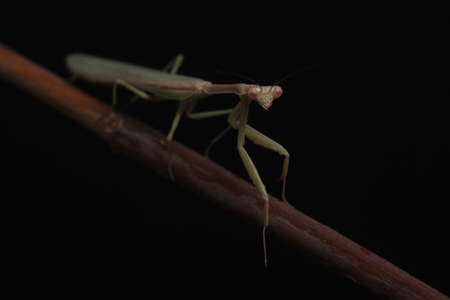 Praying mantis on a black background. Close up.