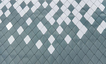 Geometric rhombus pattern on the metal facade of a building in the sun.