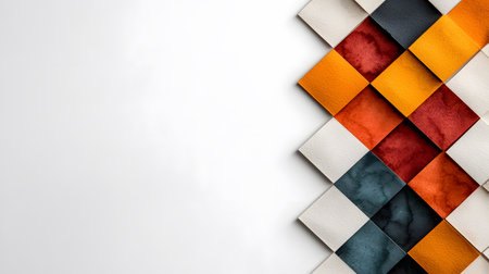 Colorful diamond shaped tiles form a vibrant and textured geometric pattern, adding a touch of modern art to any space