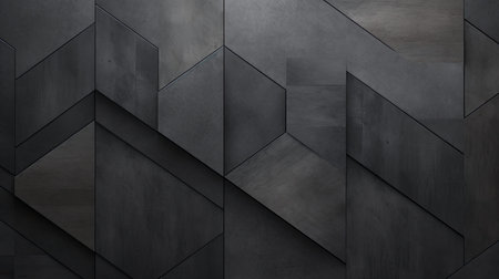 A polished, futuristic background composed of black triangular tiles arranged in a geometric pattern, creating a sleek, modern appearance. The 3D render showcases the tiles forming a textured