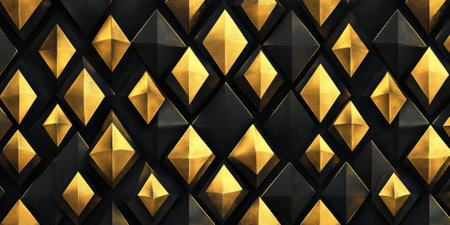A luxurious gold and black diamond pattern, where each facet gleams with opulence. The interplay between the shiny gold and rich black tones creates a striking, upscale backdrop, ideal for fashion and jewelry promotions.