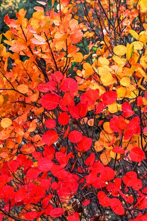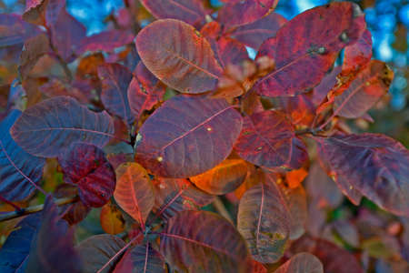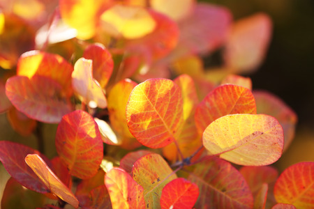 Beautiful autumn background with colorful foliage. Cotinus.